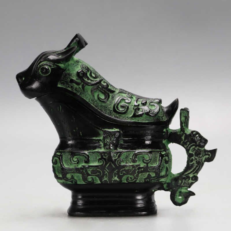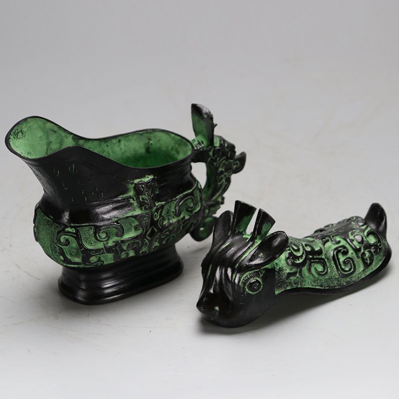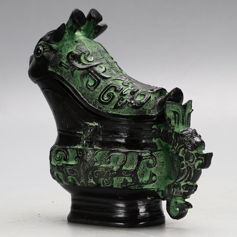 Antique-Style Bronze Vessel Late Shang Dynasty Animal-Face Patterned Wine Vessel Ceremonial Vessel Collectible Artifact