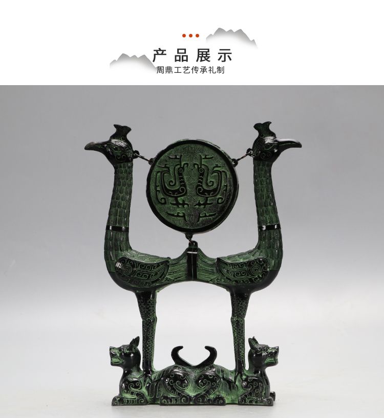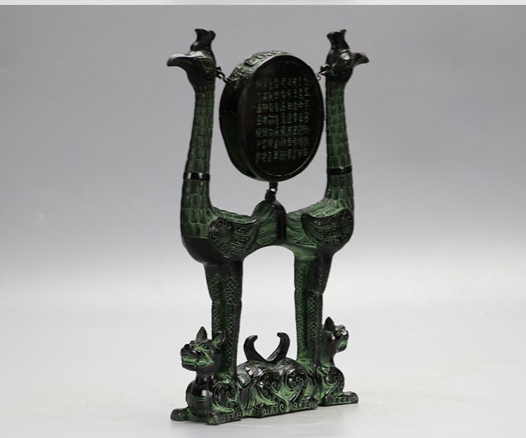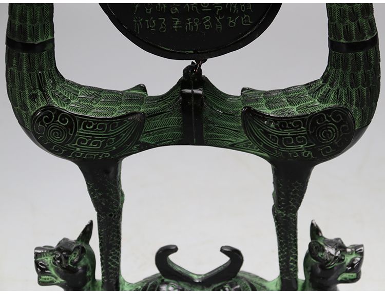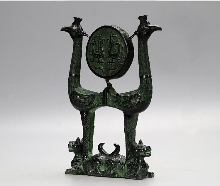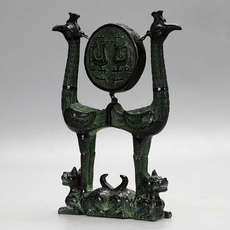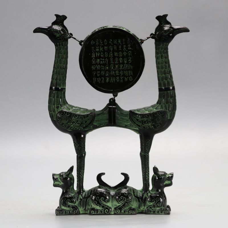 Antique-Style Bronze Artifact Warring States Period Tiger-Supported Phoenix Bird Suspended Drum Ancient Musical Instrument Double Bird Drum Stand Decorative Craft
