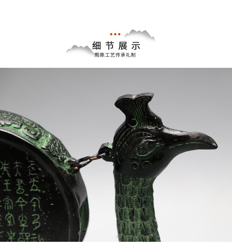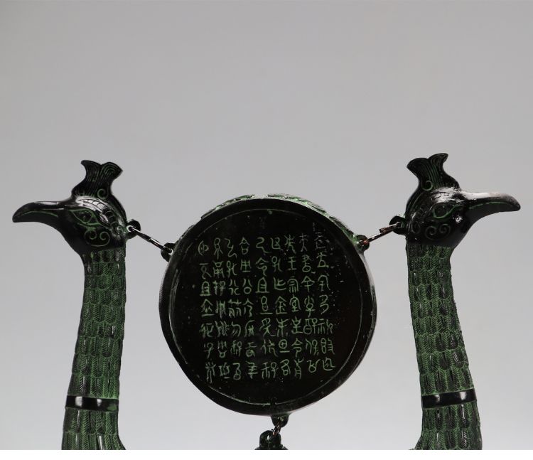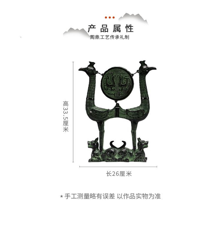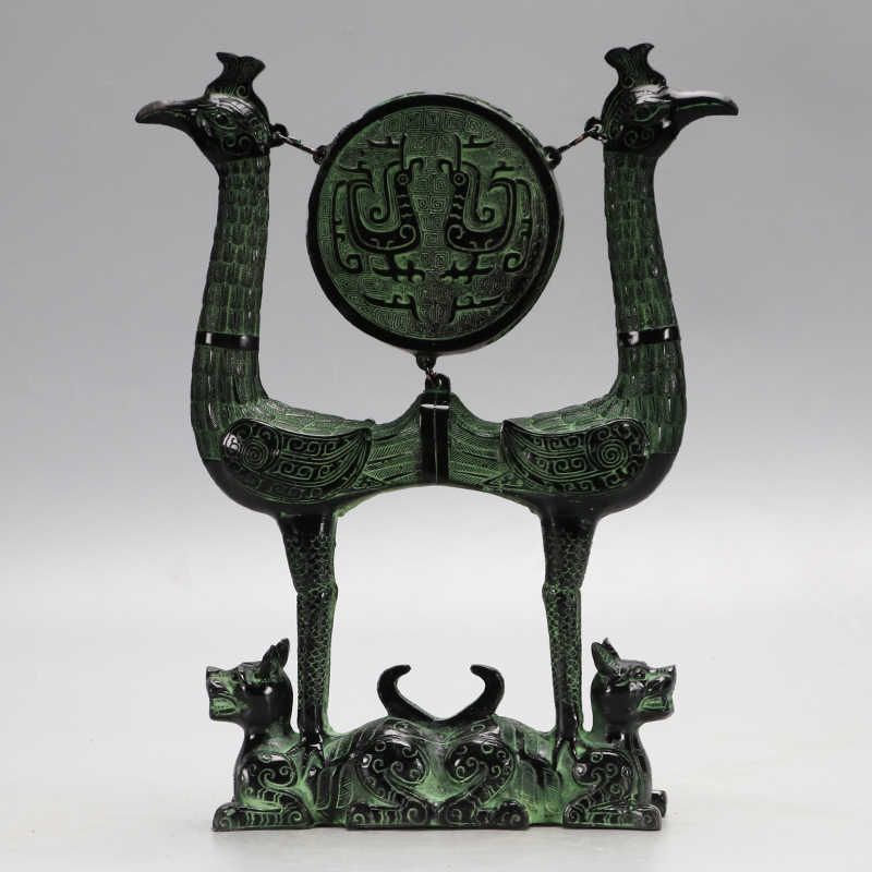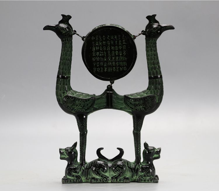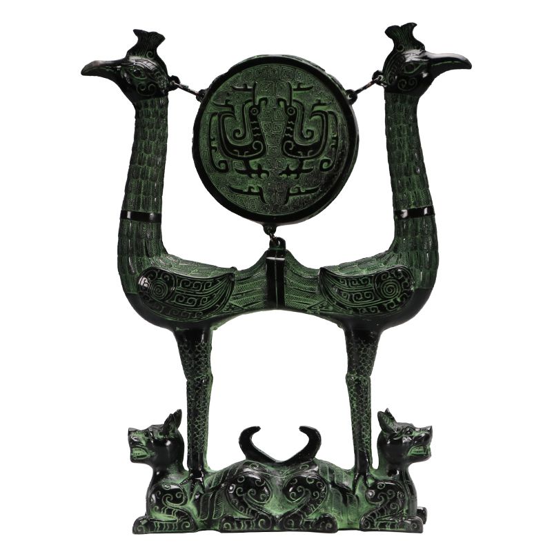 Antique-Style Bronze Artifact Warring States Period Tiger-Supported Phoenix Bird Suspended Drum Ancient Musical Instrument Double Bird Drum Stand Decorative Craft