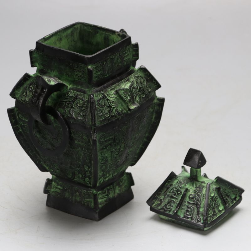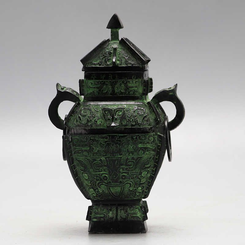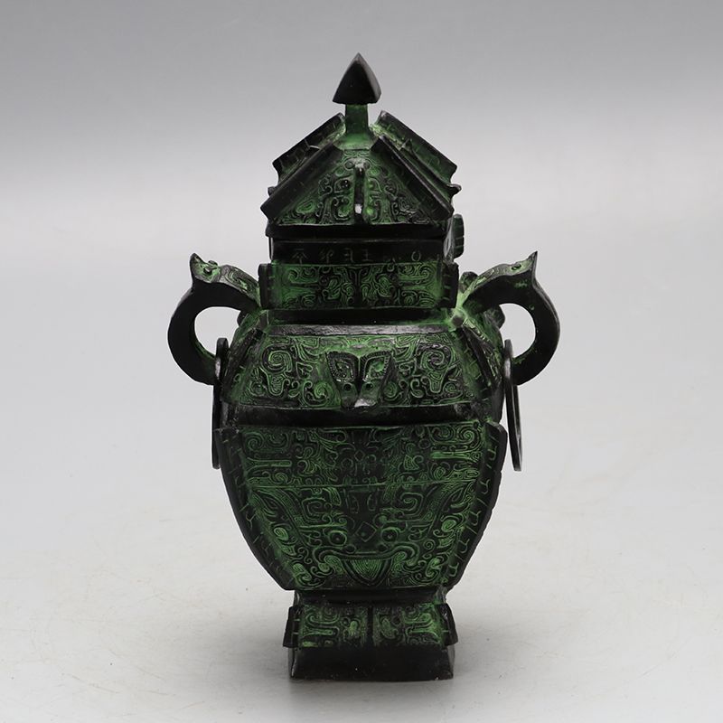 Antique-Style Bronze Artifact Shang Dynasty Animal-Face Patterned Square Lei Vessel Decorative Wine Container Crafts Collectible